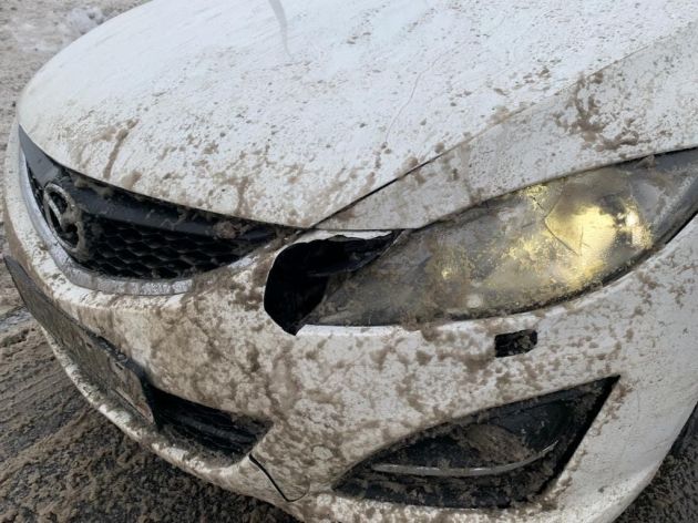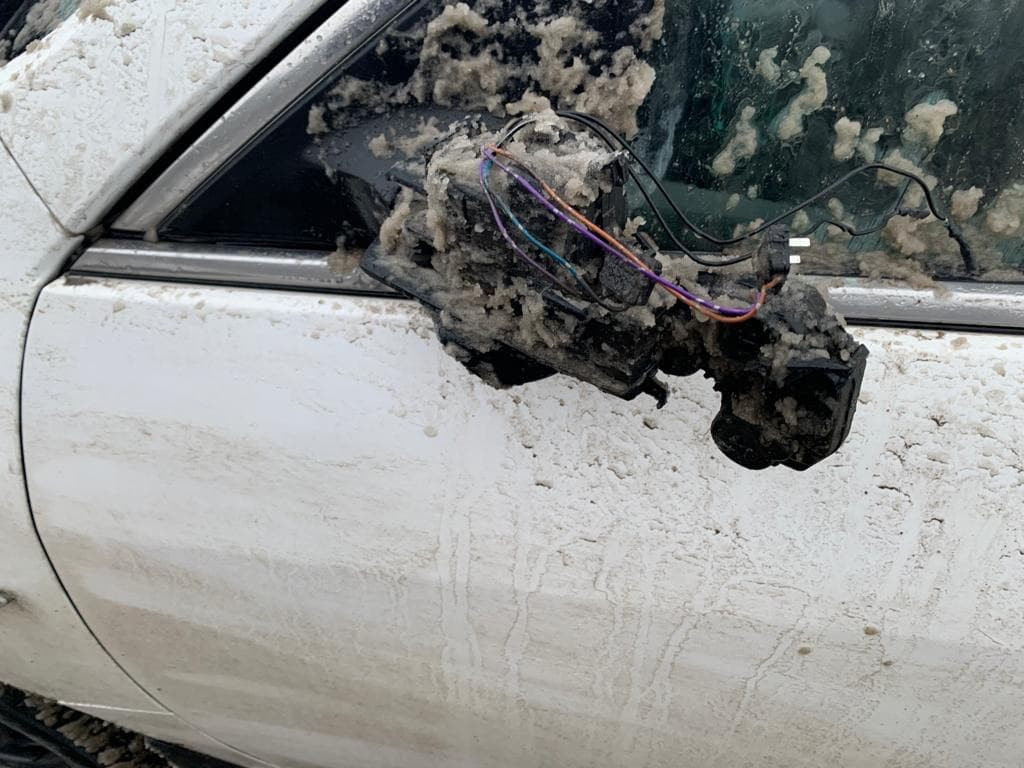 "Там скругление дороги плавное. Мы ехали за другим автомобилем в левой полосе. Он перестроился вправо, и мы вдруг видим на встречной полосе уборочную машину, которая мечет снег на нашу полосу через отбойник - лед, камни по лобовому, снег, грязища жидкая. И вправо нам не уйти, там машина. Чуть не убились на скорости. В итоге лобовое в трещинах, капот помят, минус фара, бампер, а зеркало и вовсе "с мясом" выдрано", - рассказывает собеседница.