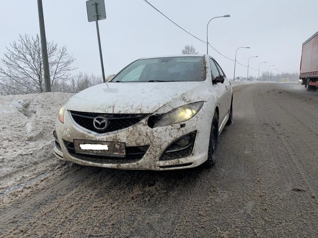 Как стало известно 47news, около 11 утра 13 декабря на Пулковском шоссе в районе обсерватории уборочная машина, работавшая на встречной полосе, обдала "Мазду-6" смесью снега и грязи.