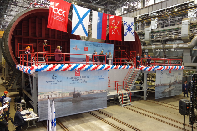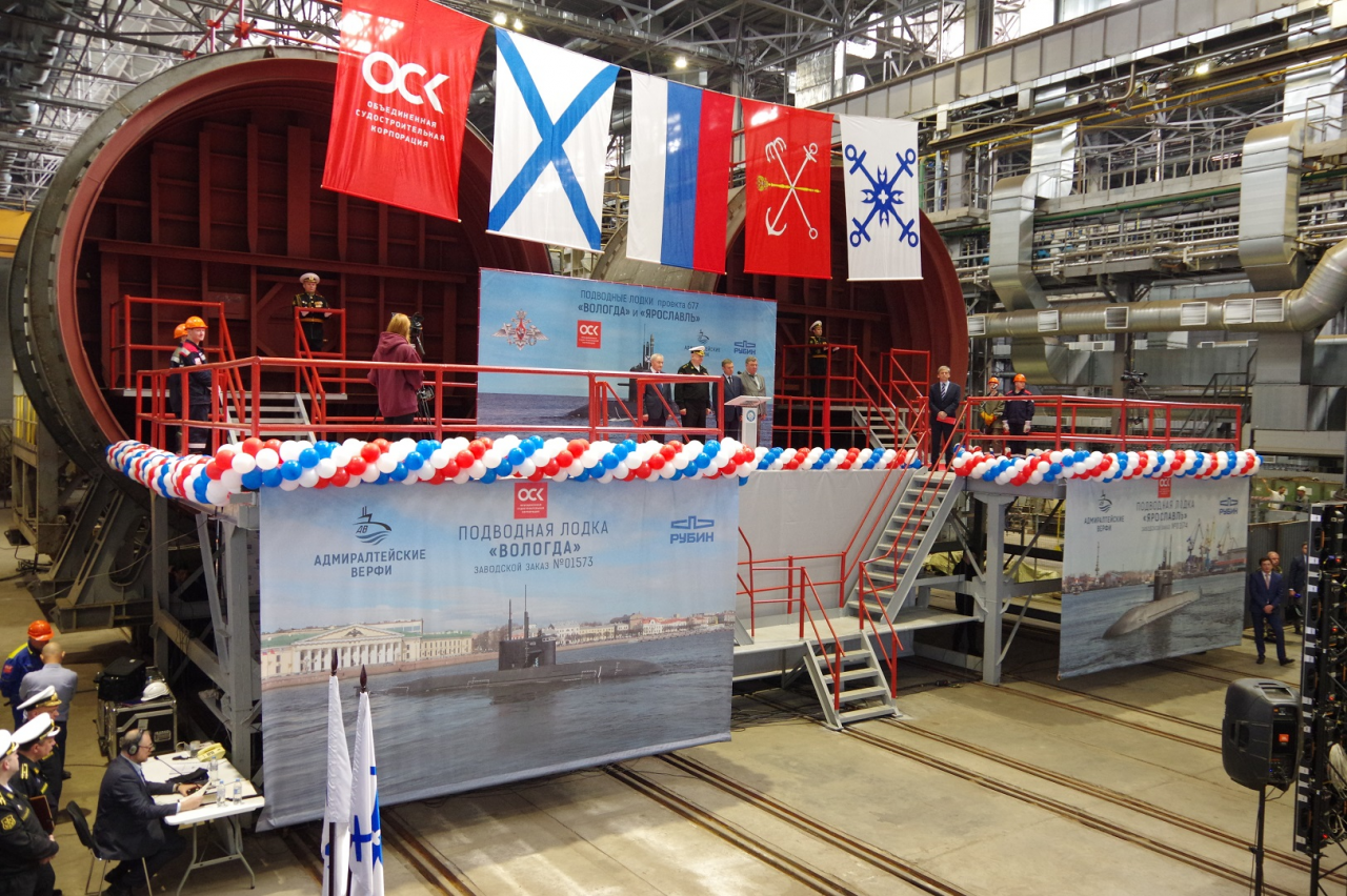 Также не секрет, что заказы 01573 и 01574 - это две большие дизель-электрические подводные лодки "Вологда" и "Ярославль". На сайте "Адмиралтейских верфей" приводятся основные характеристики и фотографии. Торжественно заложены летом прошлого года.