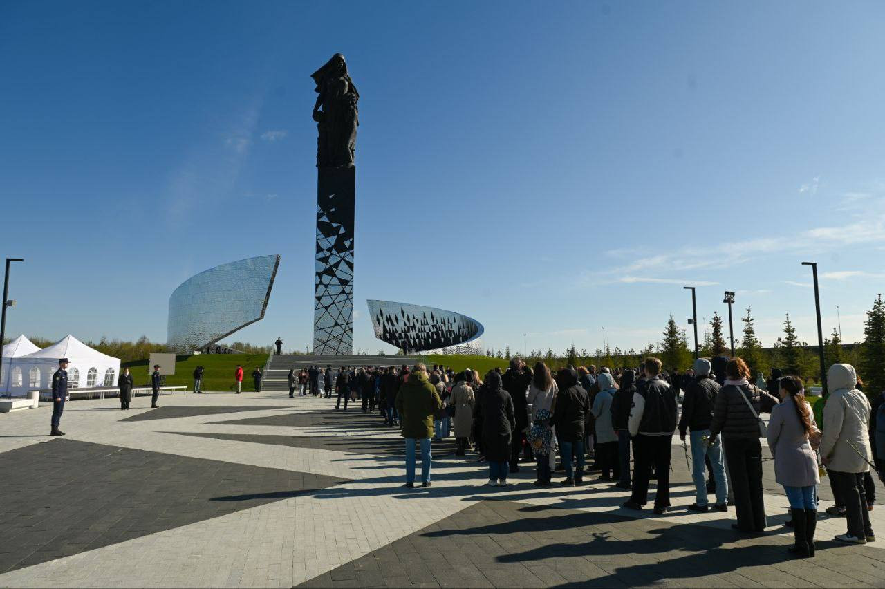 У стелы "Город воинской славы" губернатор, жители и гости Гатчины возложили цветы в честь подвига защитников Отечества.