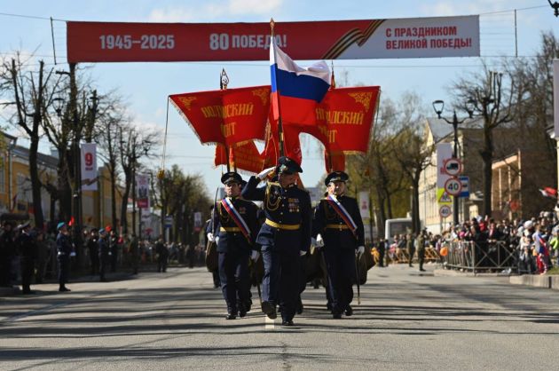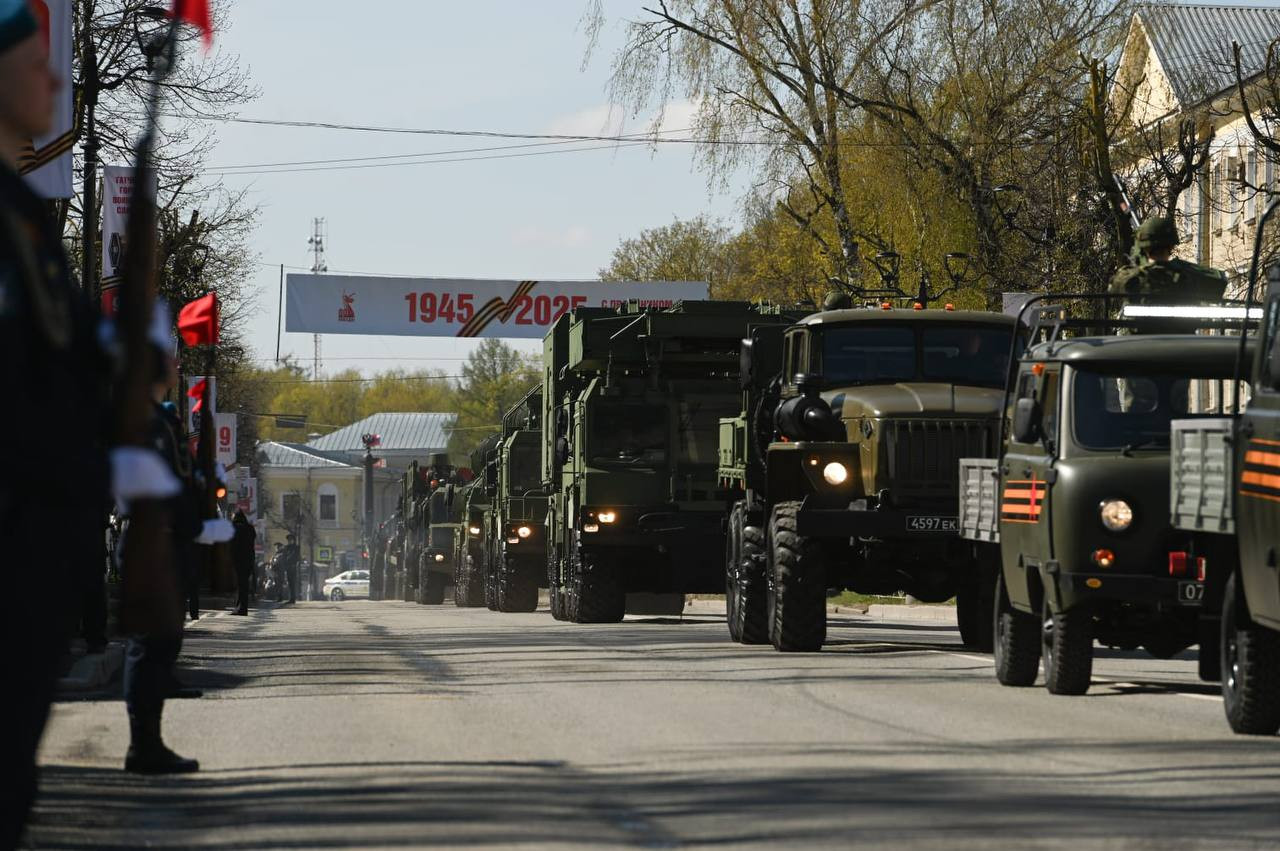 В День 80-летия Великой Победы в Ленинградской области на главном проспекте Гатчины прошёл парад пеших колонн и современной боевой техники, включая зенитные комплексы С-400 "Триумф", сообщает пресс-служба правительства региона.