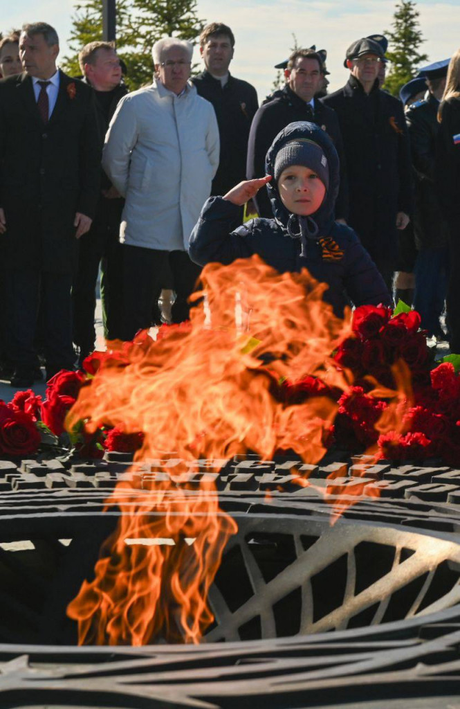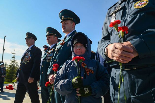 Сегодня там проходит и шествие акции "Бессмертный полк", - губернатор Александр Дрозденко вместе с жителями и гостями города несёт портреты своих героев.