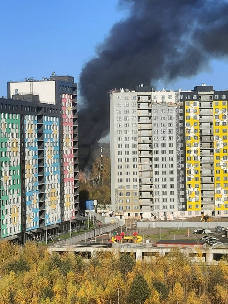 На Шоссе в Лаврики в Мурино неподалеку от ЖК "Ромашки" около полудня 17 октября начался крупный пожар, сообщают очевидцы в соцсетях.