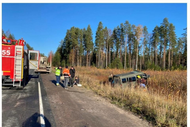 Как сообщает ГУ МЧС России по Республике Карелия, в 12:40 пятницы, 17 октября, дежурная смена 55-й пожарной части Питкярантского муниципального округа отреагировала на сигнал о ДТП на 328-м километре трассы А-121 "Сортавала". На федеральной трассе столкнулись два автомобиля. Судя по снимку с места ДТП, в аварию попал микроавтобус с хаки-кузовом. На обочине видны люди в камуфляже.