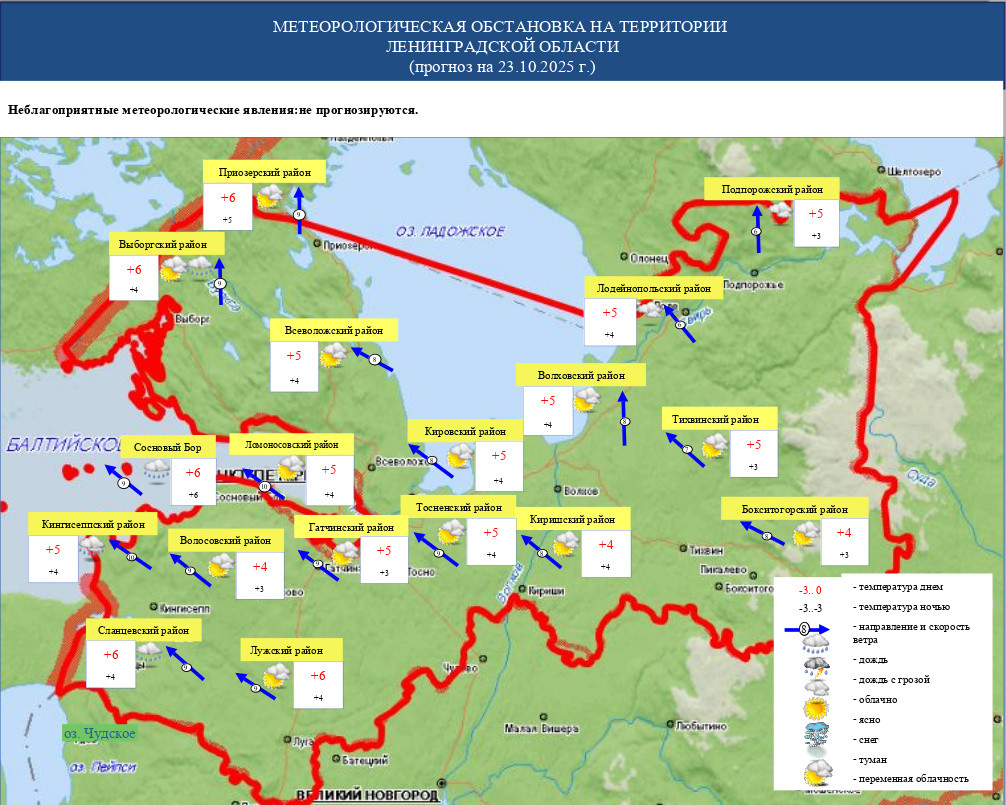 Как сообщается на сайте ГУ МЧС России по Ленобласти 22 октября, завтра будет облачная с прояснениями погода. Ночью без существенных осадков, днем местами, преимущественно на западе, небольшой дождь.