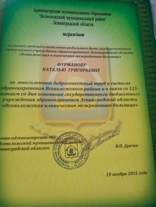 Наталье Фурмановой 57 лет. После окончания Выборгского медицинского училища по распределению приехала во Всеволожск, где и работала с перерывами на декрет в течение 36 лет.