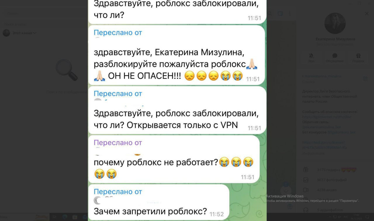 Первыми новость ощутили на себе те, ради чьей безопасности все и затевалось. Дети и подростки недовольны. Главу Лиги безопасного интернета Екатерину Мизулину завалили обращениями: "Roblox не опасен", "Это абсурд …".