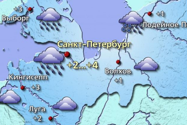 Температура воздуха в Северной столице +2…+4°, по области −1…+4°.
