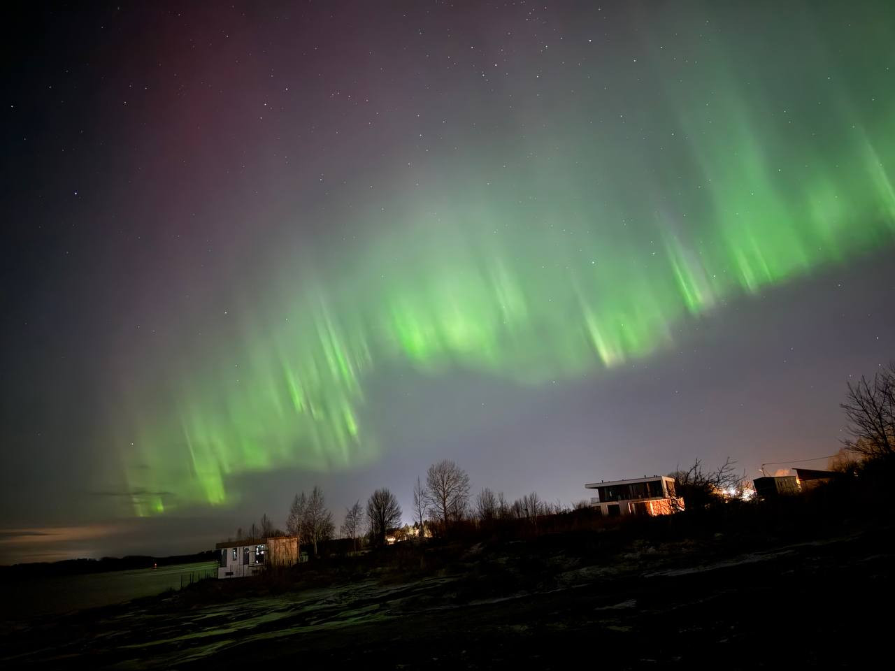 Фото из Выборга, над заливом Салакка-Лахти, сделал около 01:30 автор @rybalchenko, там же около 1:40 - @vyborgfotki.
