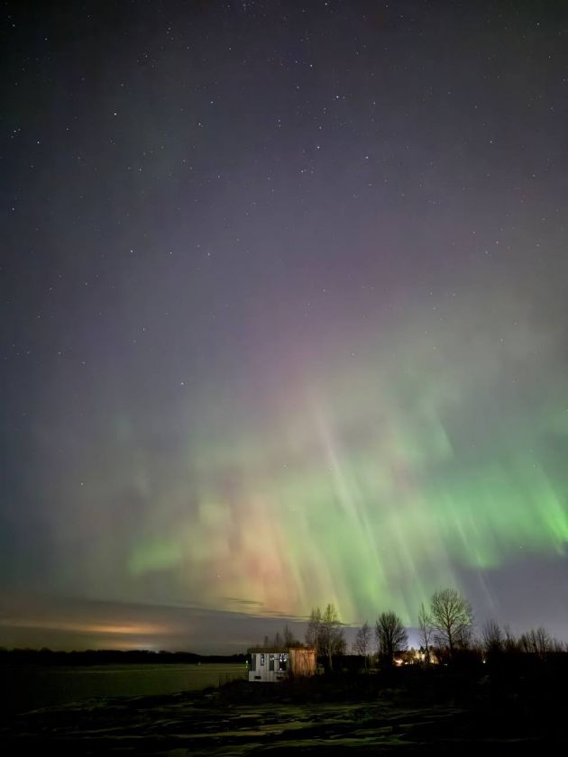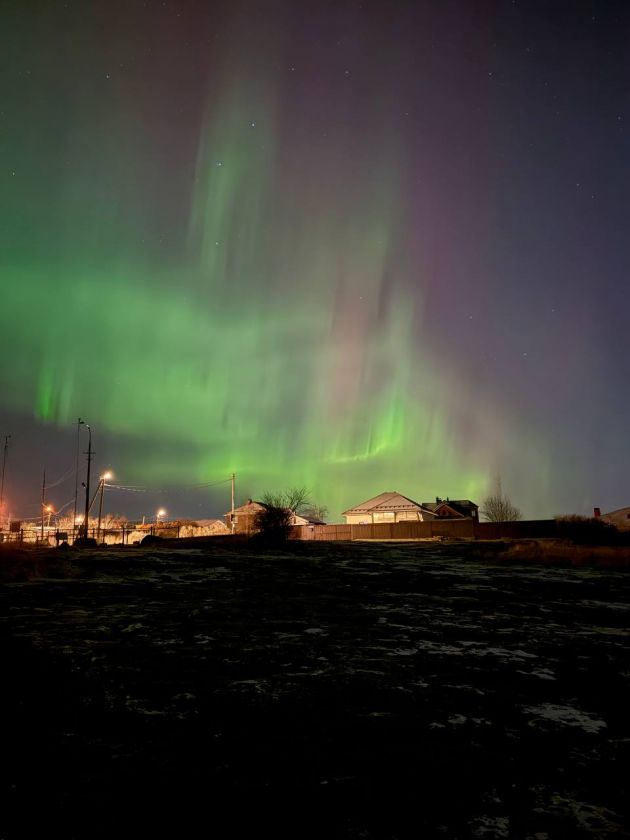 - Сначала на небе появились дюны, не частый вид, глазами скорее размытое серое облачко, но после часа ночи небо заполыхало ярко-ярко. Получилось сделать небольшой таймлапсик не смотря на ледяной штормовой ветер, пронизывающий насквозь. Иногда искорками чиркали метеоры. Дивная ночь была сегодня, - пишет автор фото и видео - Катя Стрельникова.