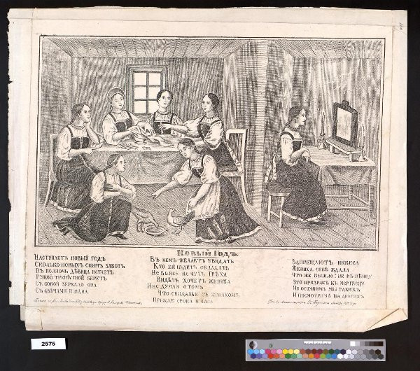 Изображение новогоднего гадания, неизвестный гравер (1858 г.)
