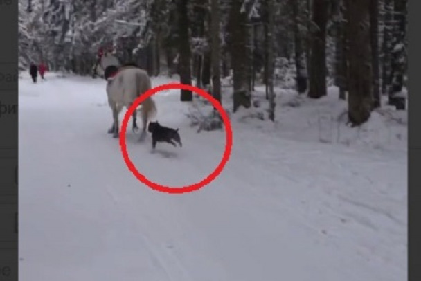 Bидео того, как собака гоняет лошадь под Сосновым Бором, появилось в сетях.