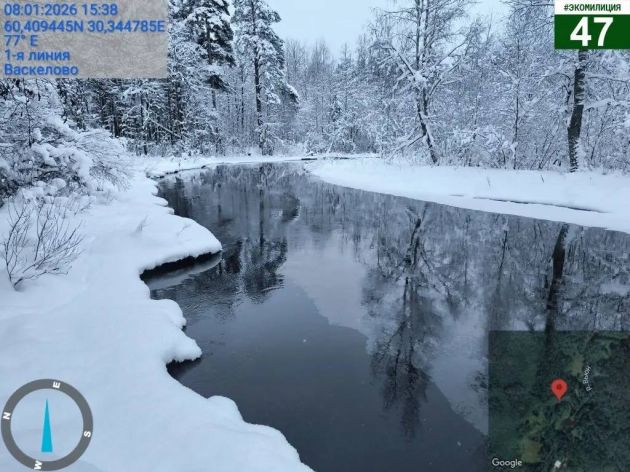 В социальных сетях жители Васкелово и Лемболово не первый день обсуждают разлив нефтепродуктов в реке Вьюн у местной железнодорожной станции. Также распространяются видео, снятые 8 января. В кадр попали пятна с характерными радужными разводами.