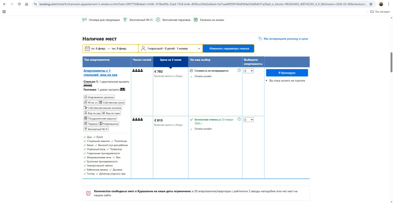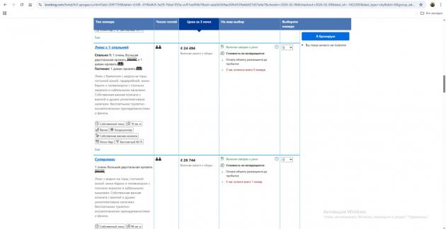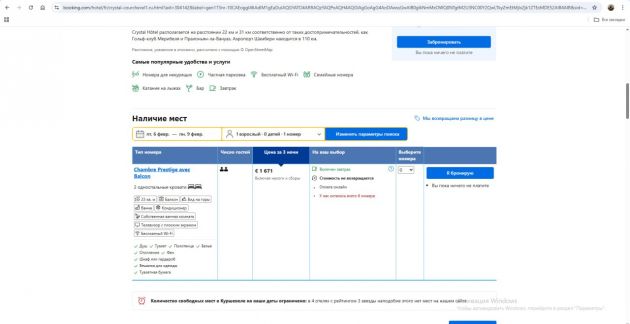скриншоты с сайта Booking.com