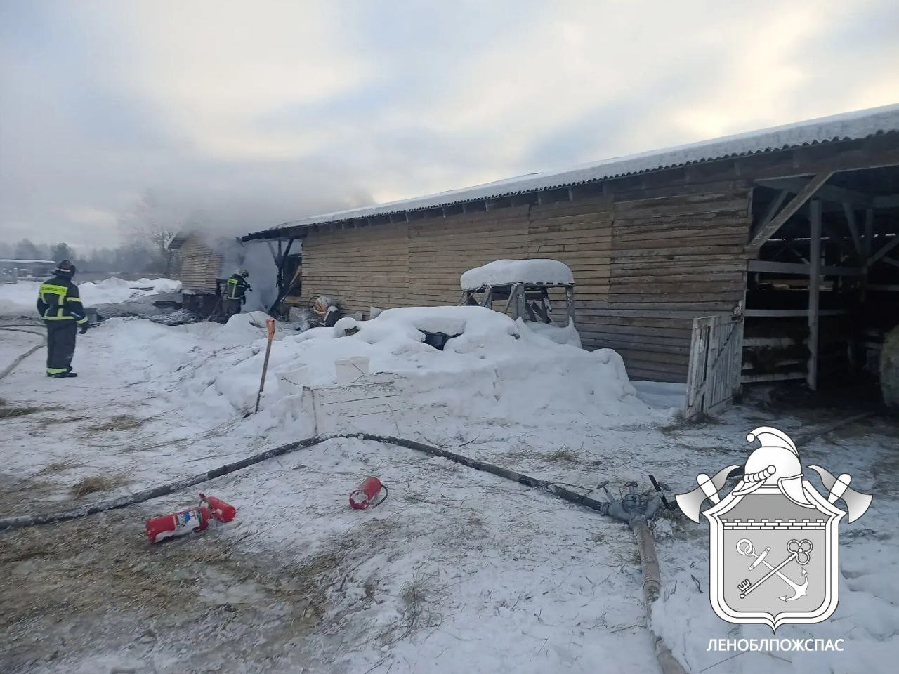 Животноводческую ферму тушат в Гатчинском округе Ленинградской области. Парнокопытные эвакуированы.