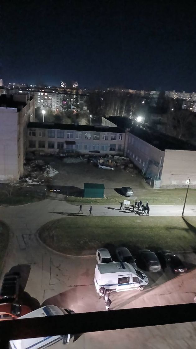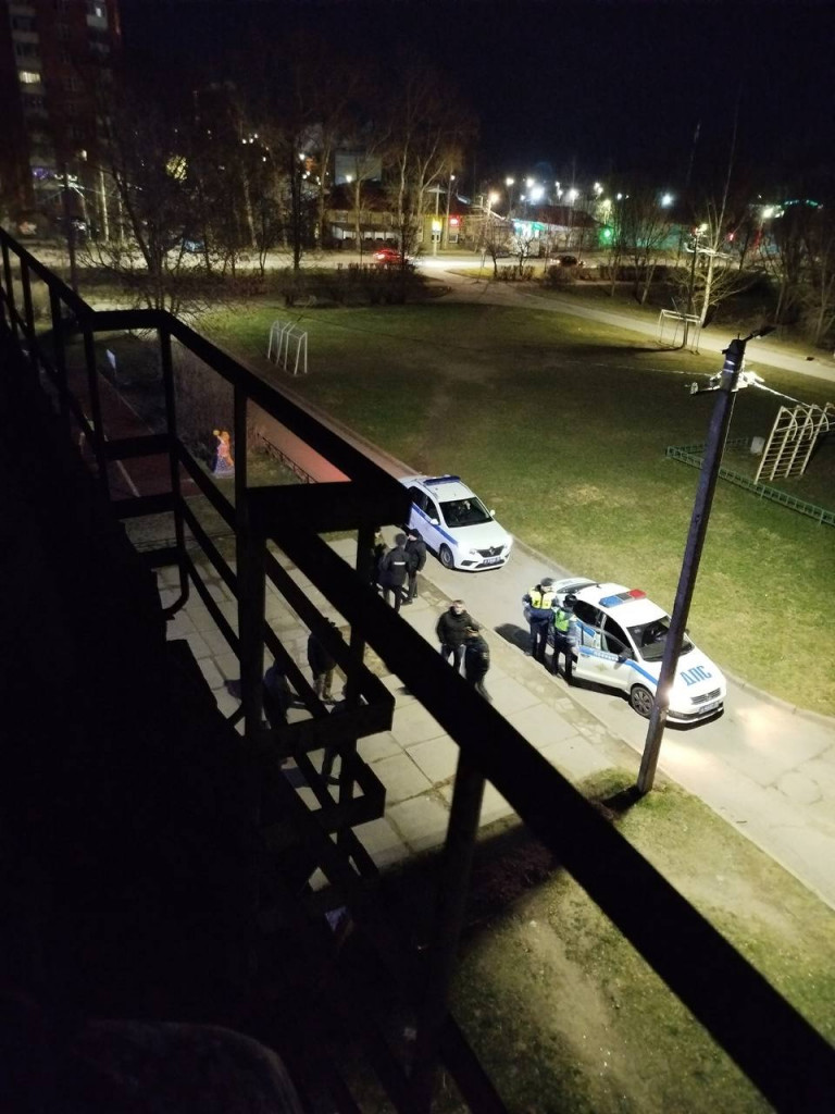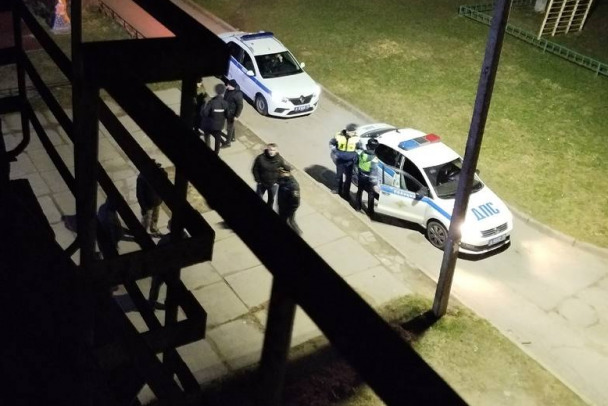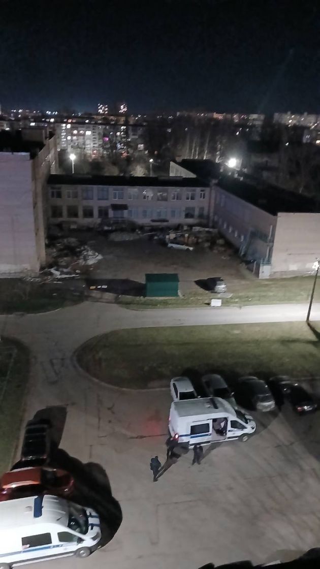 Как рассказали изданию местные, примерно с шести вечера и до глубокой ночи к общежитию подъезжали машины силовиков. Внутрь зашли 10-15 людей в форме с автоматами, светили фонарями, пытались зайти в одну из комнат – не открыли. Вскрыли и вытащили предполагаемого главаря. По словам собеседников, участвовал ОМОН. На кадрах можно увидеть полицейские авто.