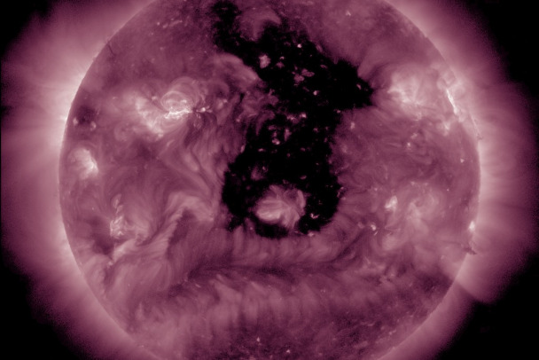 "По расчетам, сегодня до конца дня поток быстрого солнечного ветра, который формируется сейчас в крупной корональной дыре на Солнце, догонит Землю, запустив примерно 2-3-дневный период нестабильной геомагнитной обстановки", - отмечается в сообщении 17 апреля.