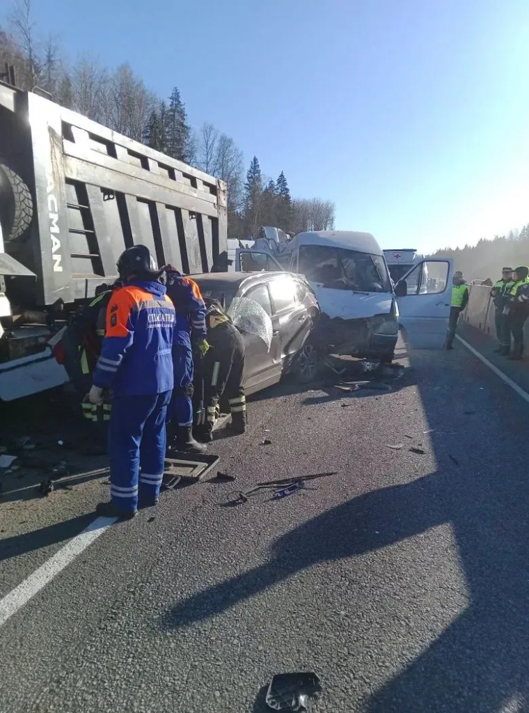 Как сообщает Аварийно-спасательная служба региона 20 апреля, "в результате столкновения микроавтобуса Mercedes, грузовых автомобилей Sitrak и DAF, а также легковых автомобилей Renault Logan и Chery пострадали 9 человек".